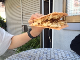 そこではタコせんべいが食べられます。