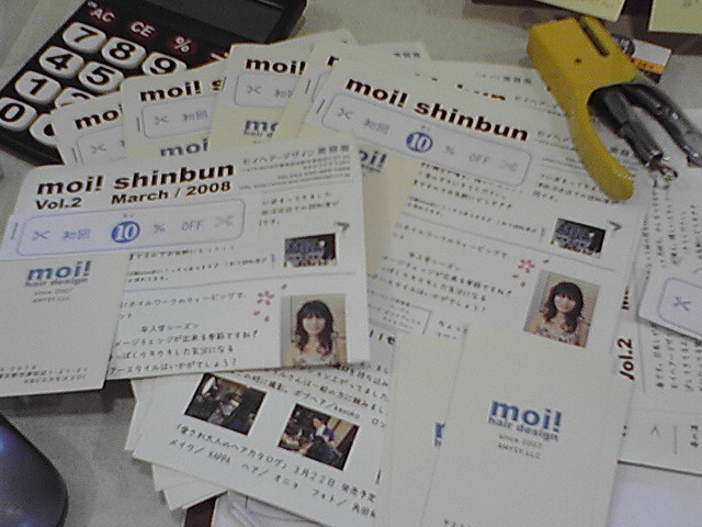 ポスティング用にせっせとモイ新聞をホチキシィング。